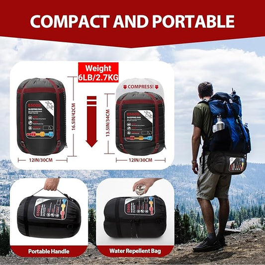 Camping Sleeping Bag, 32℉ Sleeping Bags for Adults Kids Teens Cold Weather Warm Sleeping Bag Winter for 3-4 Season Camping, Camping Gear Equipment, Traveling, and Outdoors