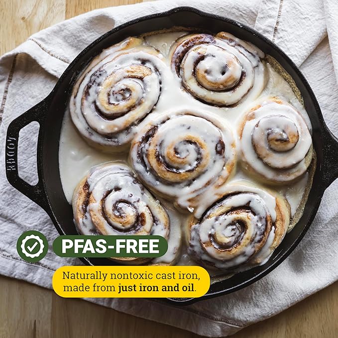 - PFAS-FREE & NON-TOXIC COOKWARE: Lodge cookware is made without PFOA and PTFE, and we’re proud to say our seasoned cast iron is made with just iron and oil, as it has been since the beginning. We are committed to making products that are safe for you and the people around your table too. Every step in our manufacturing process is designed to protect our employees, the people who love our cookware, and the environment.