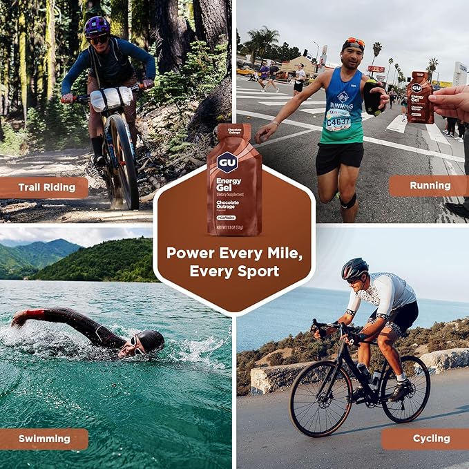GU Energy Original Sports Nutrition Energy Gel, Vegan, Gluten-Free, Kosher, and Dairy-Free On-the-Go Energy for Any Workout, 24-Count, Chocolate Outrage