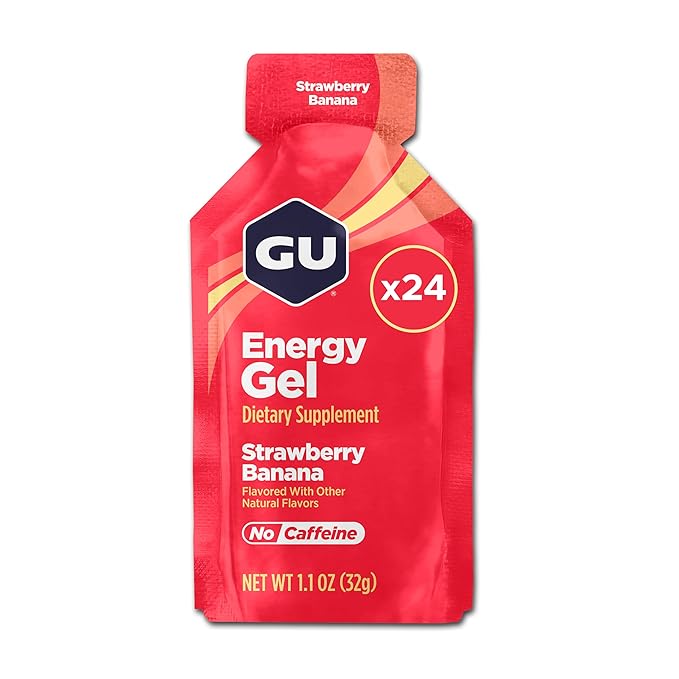 GU Energy Original Sports Nutrition Energy Gel, Vegan, Gluten-Free, Kosher, and Dairy-Free On-the-Go Energy for Any Workout, 24-Count, Strawberry Banana