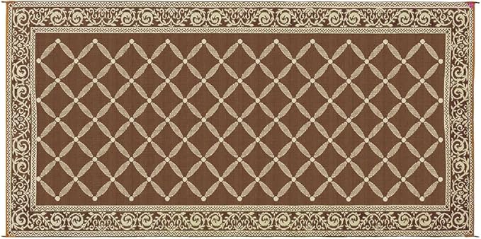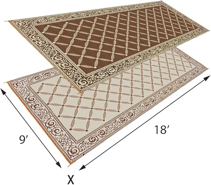 Stylish Camping 119187 9-feet by 18-feet Reversible Mat, Plastic Straw Rug, Large Floor Mat for Outdoors, RV, Patio, Backyard, Picnic, Beach, Camping (Brown/Beige)