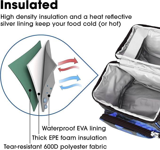 - Insulated — High density insulation and a heat reflective silver lining keep your food cold (or hot) in this thermal lunch bag