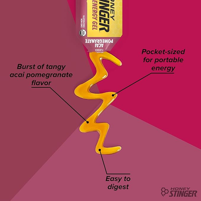 Honey Stinger Organic Acai Pomegranate Energy Gel, Gluten Free & Caffeine Free, for Exercise, Running and Performance, Sports Nutrition for Home & Gym, Pre and Mid Workout, 24 Pack, 26.4 Ounce
