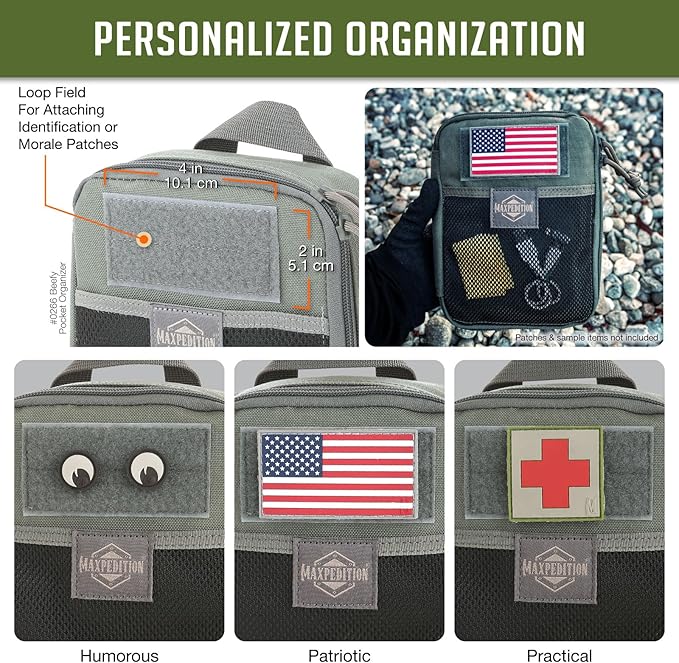 • [ Customizable and Versatile ]: With MOLLE-compatible PALS webbing and a front loop field for patches, the Beefy Pocket Organizer integrates easily into your gear setup, offering flexibility and personalization.