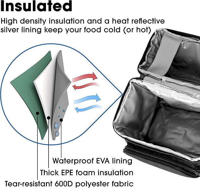 - Insulated — High density insulation and a heat reflective silver lining keep your food cold (or hot) in this thermal lunch bag