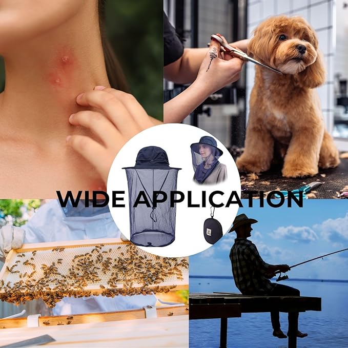 - STAY ON WITH DRAWSTRING: The Mosquito Net Hat has adjustable chin strap that keep the hat stay on your head. Take this UV protection netting hat, enjoy your fishing, camping, hiking, farming, gardening, yard work, exploring nature, etc.Foldable mosquito net head hat does not take up a lot of space, easy to carry with a pouch bag