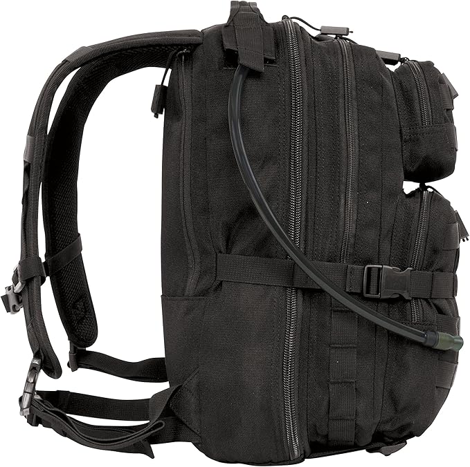 • Military-style backpack with included 2-liter hydration reservoir, tubing, and easy-to-use bite valve for on-the-go H2O