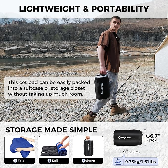 - VERSATILE AND CONVENIENT - Our camping cot pad is not only a cot pad and you can use it as a sleeping pad on the floor or on the lawn. The cot sleeping pad is machine washable.