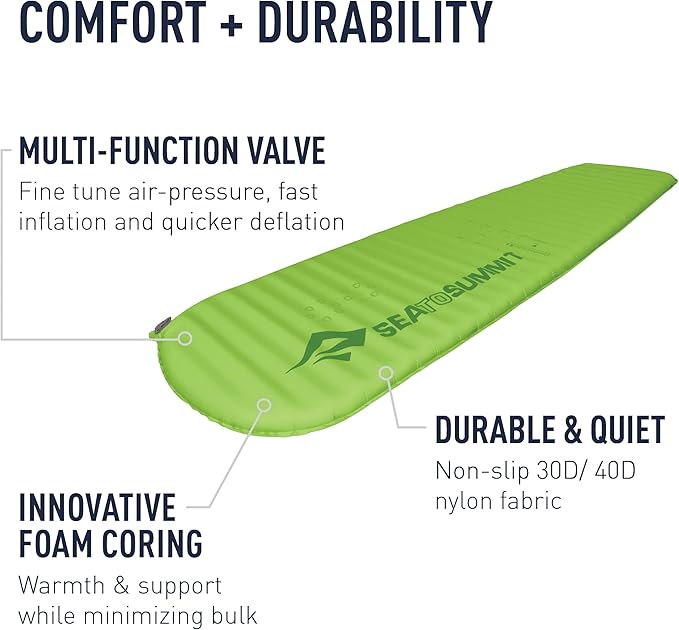 Sea to Summit Comfort Light Self-Inflating Foam Sleeping Pad for Camping and Backpacking, Regular (72 x 20 x 2 inches)