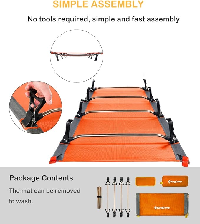 KingCamp Ultralight Camping Cot, Portable Folding Cots 265lbs Heavy Duty Sleeping Bed with Pad Pillow for Adults Outdoor Backpacking Travel Hiking, Orange