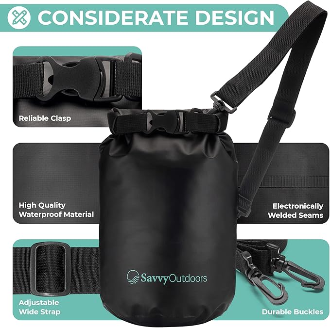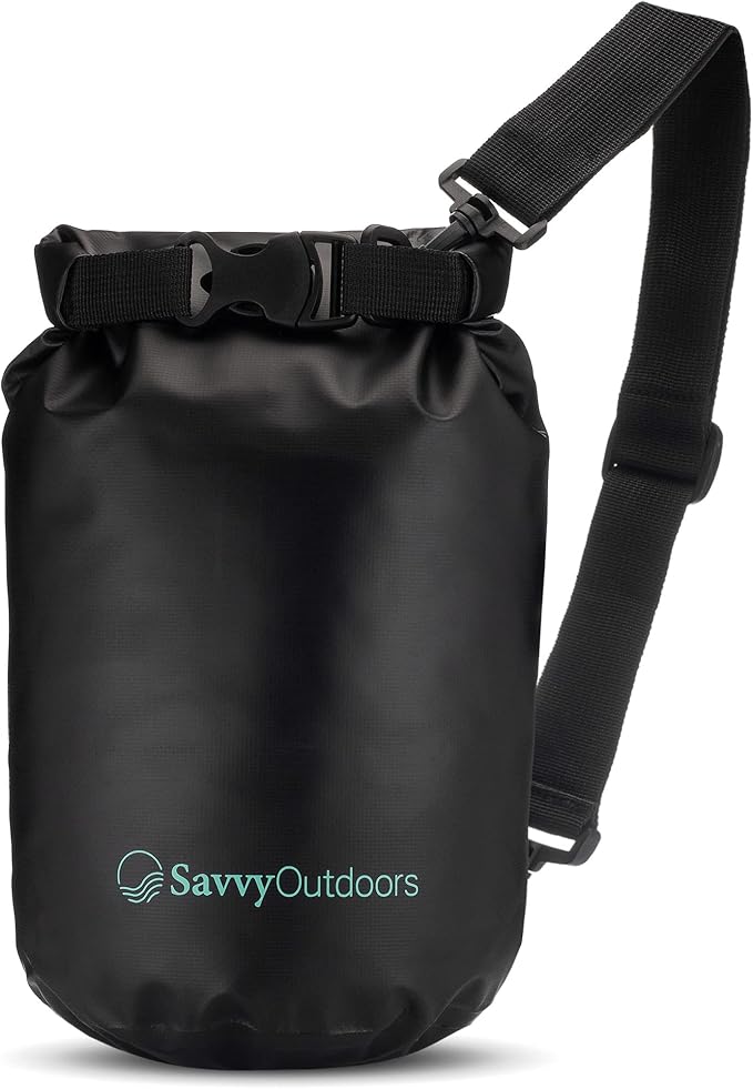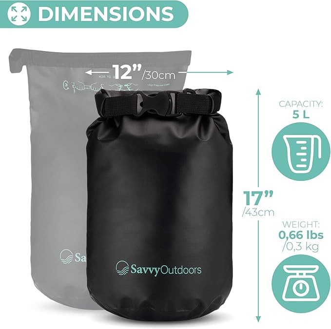 Savvy Outdoors Waterproof Dry Bag - Dry Bags for Food & Gear, Stuff Sacks for Backpacking and Camping Equipment, Waterproof Bag for Beach, Boating, Kayaking (5L, Black)