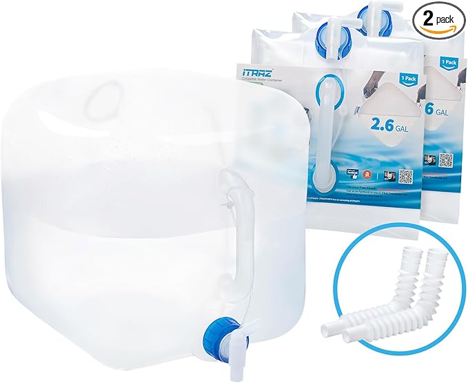 - ✔Emergency Preparedness: The collapsible water containers are designed for emergency situations. A 2.6 gallon container provides enough water for 1 person and 2 pets (dogs or cats) for one day, while a 5.3 gallon container provides enough water for 3 people for one day. In case of a natural disaster, such as a hurricane, tornado, drought, earthquake, flood, mountain fires, snowstorm, biohazard, or even world war, this water container can serve as an essential life-saving tool in a survival kit.