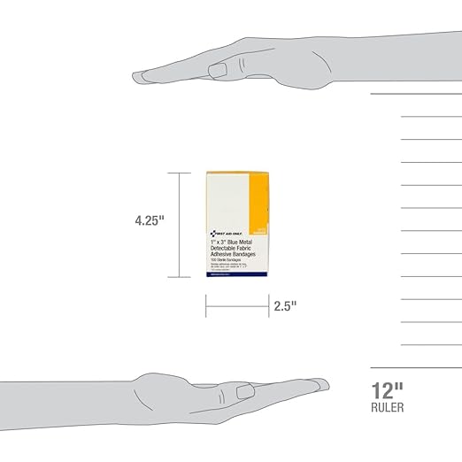 First Aid Only H175 Blue Metal Detectable 1 x 3 Fabric Adhesive Bandages, Box of 100