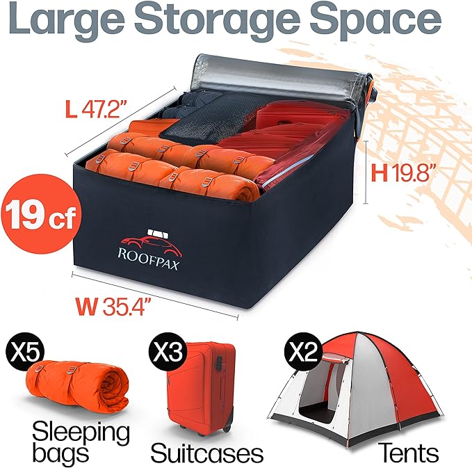 RoofPax Waterproof 19 Cubic Feet Rooftop Cargo Carrier Bag – Heavy Duty Car Roof Storage with Double Zipper & Tie Down Straps – Fits Cars with or Without Roof Rack