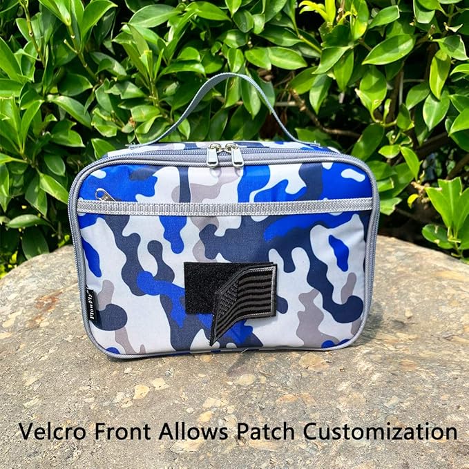 - ✿ Good Use:Premium fabric construction makes this small blue camouflage lunch kit durable and easy to clean. With ice pack,insulation helps retain hot and cold temperatures whole day to improve food quality, freshness and taste,keep the meal healthy.It is moisture resistant,quick and simple Organization,perfect for Age3+ kids and On-The-Go Parents.