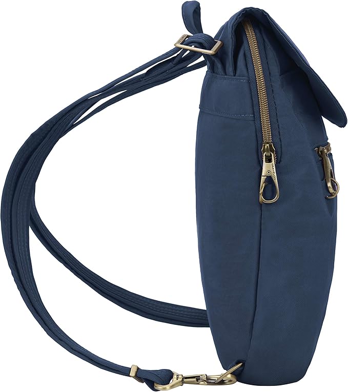 • Anti-Theft features include slash & cut resistant straps and panels, locking zippers, RFID protected card slots and Passport pocket