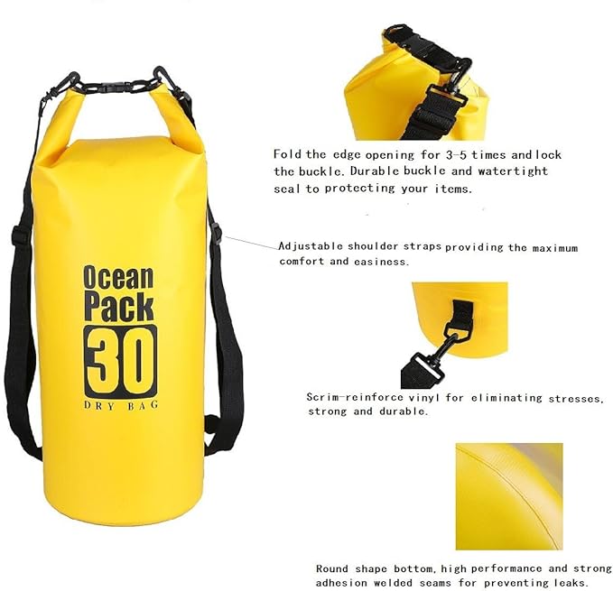 Sportmusies Waterproof Dry Bag - Roll Top Dry Compression Sack Keeps Gear Dry for Kayaking, Beach, Rafting, Boating, Hiking, Camping and Fishing (30L, Yellow)