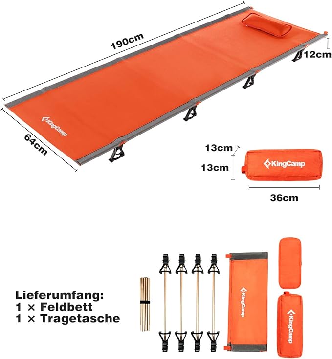 KingCamp Camping Cot, Folding Portable Heavy Duty Ultralight Cots for Adults Camping Tent Hiking Backpacking Mountaineering Travel Indoor Outdoor Indoor Base Camp with Pillow, Support 265 Lbs
