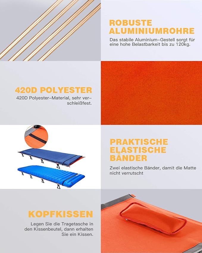- MULTI-USE: The portable adults cot for camping is available with pillow in green , black, blue orange and grey, best for outdoor grass, forest, indoor bedroom, living room, office and any places you need to sleep.