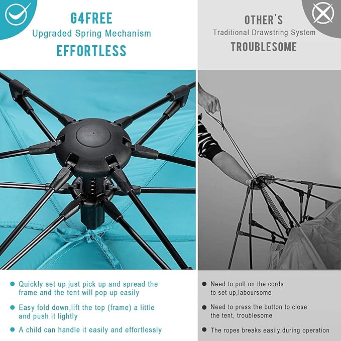 - 【Hub System Design for Easy Setup】With the new integration hub system, this beach tent can be easily set up or folded down, no need to struggle with this foldable beach sun shelter, no need to pull the string painfully. The instant pop-up beach tent is a great fit for your family's outdoor companion. Such as camping, hiking, picnic, fishing, and sporting events, and enjoy a good time with your family.