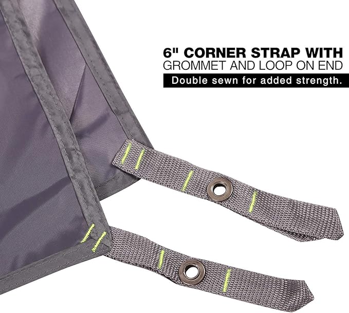 - MULTIPURPOSE TENT TARP FOR UNDER TENT: The outdoor tent footprint is ideal for a tent, the beach, picnics, camping or sporting events. It can also be tied to provide a sun or rain canopy; This is a a must-have for any outdoor activities.