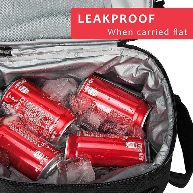 - LEAKPROOF WHEN CARRIED FLAT - The thermal insulation is leakproof on account of adapting heat-melted seam technology, but notice to carry the lunch bag flat so that it can be leakproof, otherwise, the liquid will outflow from the zipper strap.