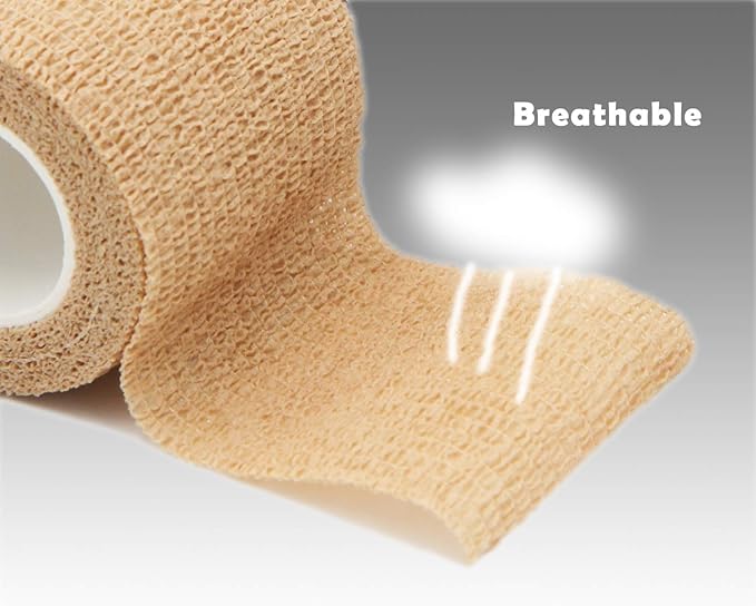 - The bandages are made from high quality porous fabric with bacon strips that are totally safe for your skin as they allow good ventilation. You don't need to worry about they loosen and fall of by sweat or water.They are very light weighted, and safe for your pets as well!(horses, ponies, dogs, cats, etc)