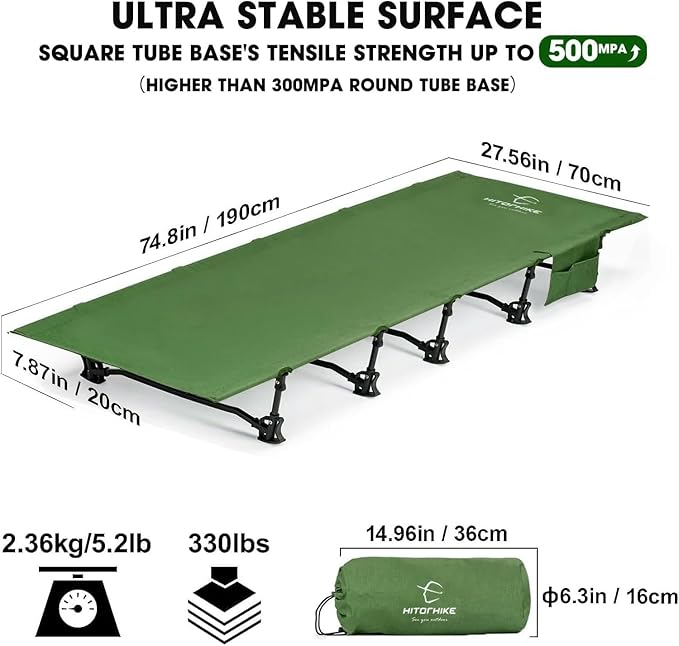 HITORHIKE Camping Cot Compact Folding Cot Bed for Outdoor Backpacking Camping Cot Bed
