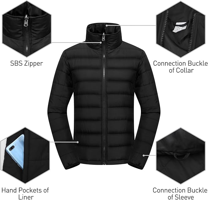 • Practical Winter Jacket with 6 Pockets: 2 zippered hand pockets and 1 chest pocket outside, 1 internal zippered pocket; 2 warm hand pockets of the cotton padded liner. Multi pockets are suit for phone,wallet,passport and other accessories.
