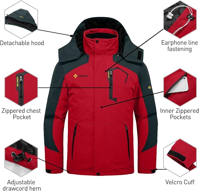• Windproof Design: Detachable hood featuring adjustable drawstring, stand collar, seamless zippers,adjustable cuffs with velcro, two-way zipper and button to connect shell and inner jacket together,all the well-designs are for better wind resistance effect.