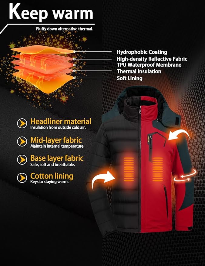 - Waterproof & Wear Resisting Jacket: Made of Teflon materials and professional coating with waterproof function fabric, you won't worry about getting wet while skiing, snowboarding or in rainy days.Reinforced shoulders, elbows, and other high-wear areas enhance durability and abrasion resistance for long-term outdoor use.