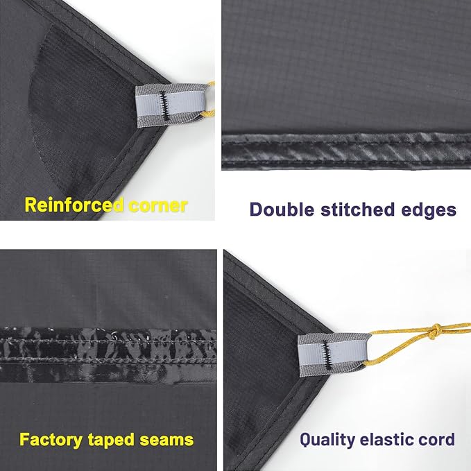 - Easy to Setup & Pack up: Unfold the footprint and lay it on ground to use in a second, can also use stakes and guyline (not included) to connect the mat through the elastic cord if you make it as a tent tarp