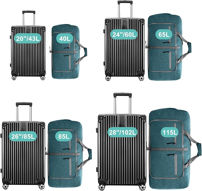 - Foldable and Spacious travel bag:The travel organizer bag can be folded into a really small size taking up so little space but opens up to have about 40L capacity of travel bags to use as a luggage bag in case that your suitcase swells. This travel duffel bag is designed to work best with bag packing cubes - to give you an organized lightweight travel experience.