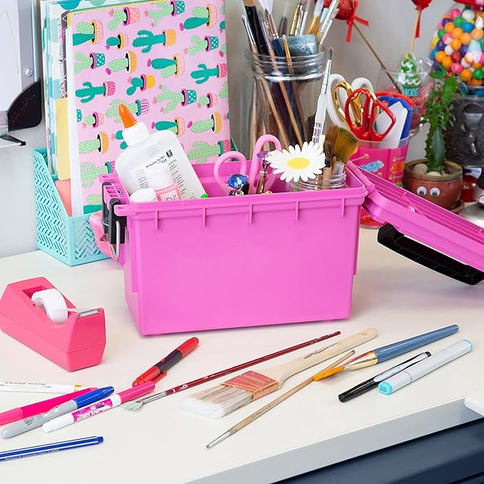 Sheffield 12631 Ammo Storage Box, Stackable .30 Cal Field Boxes, Water and Dust Resistant, Lockable Storage Box with Handle, Secures Hunting Gear, Supplies, and Bullets, Made in USA, Pink, 1-Pack