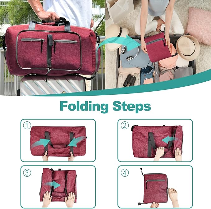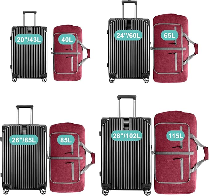 - Foldable and Spacious travel bag:The travel organizer bag can be folded into a really small size taking up so little space but opens up to have about 40L capacity of travel bags to use as a luggage bag in case that your suitcase swells. This travel duffel bag is designed to work best with bag packing cubes - to give you an organized lightweight travel experience.