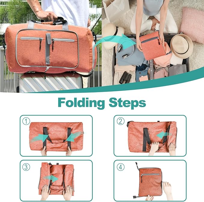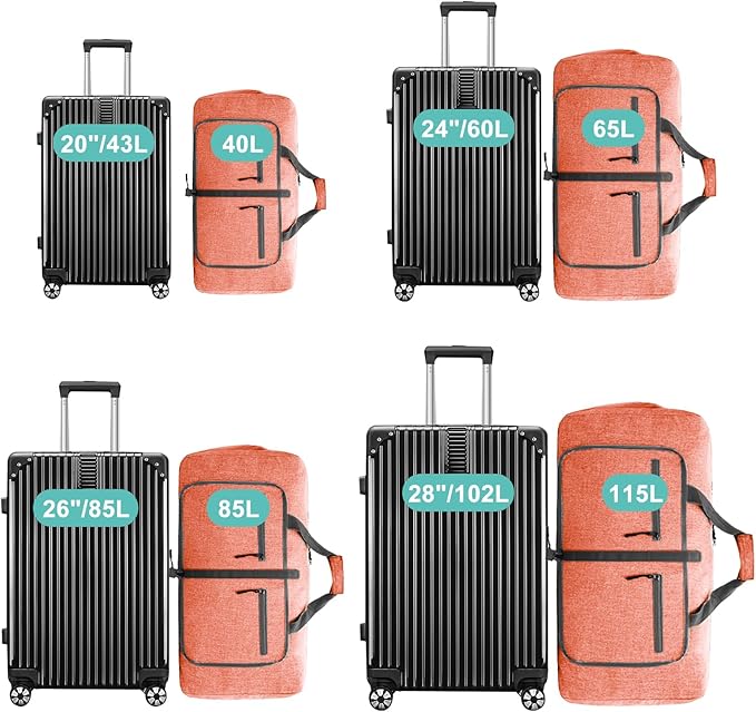 - Foldable and Spacious travel bag:The travel organizer bag can be folded into a really small size taking up so little space but opens up to have about 115L capacity of travel bags to use as a luggage bag in case that your suitcase swells. This travel duffel bag is designed to work best with bag packing cubes - to give you an organized lightweight travel experience.