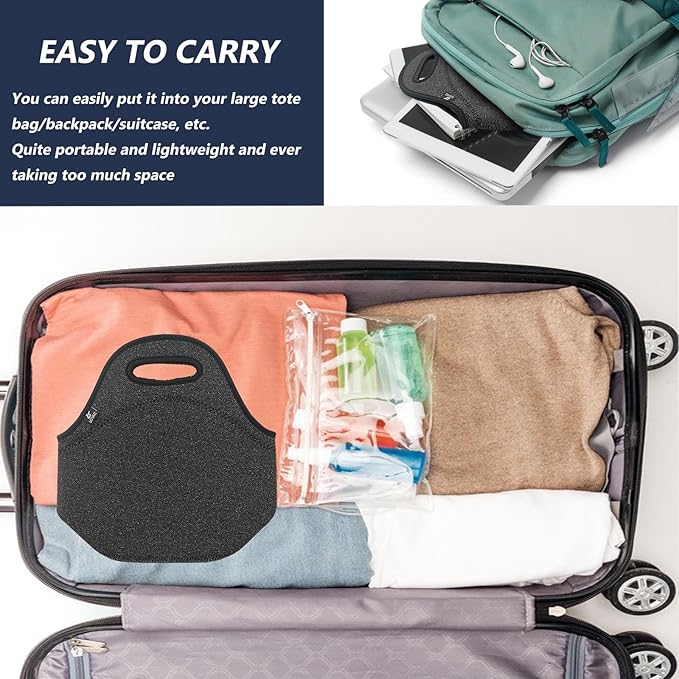 LOVAC Neoprene Lunch Bag for Men,Insulated Lunch Tote,Durable and Waterproof Lunch Bag,Reusable Soft and Lightweight (Black)