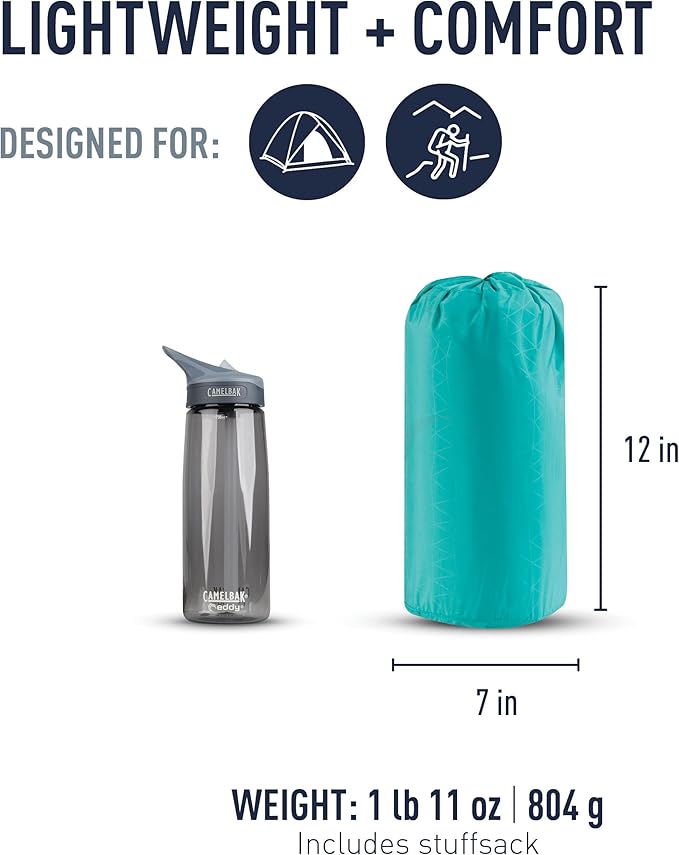 - 3-season, 2-inch thick foam sleeping pad provides a lightweight, yet comfortable women’s-specific sleeping surface for 3-season camping and backpacking