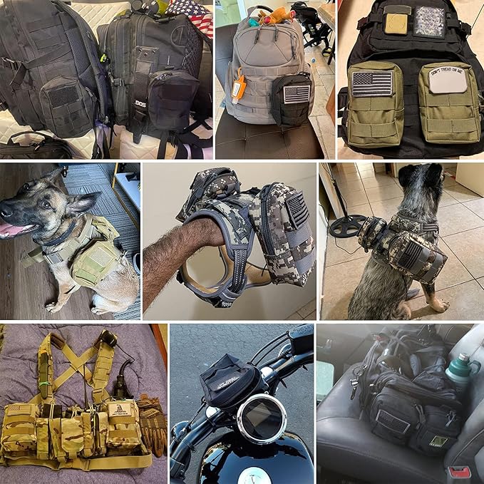 - These molle pouches are perfect for camping & hiking or for daily use. You can also play your imagination and put it on your bike or add it to the vest of your service dog. Versatile pouches would make your your life easier and happier.