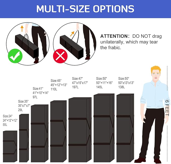 • LARGE CAPACITY: INFANZIA large-capacity duffle bag is one of the essential items for your travel. It can be used to store tents, clothing, sports equipment or foldable strollers. INFANZIA travel bags are available in 47*15*17 Inch/120*38*43 CM size to meet your travel needs