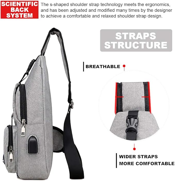- ADJUSTABLE AND PADDED COMFY STRAPS&BACK - The comfortable straps are padded with thicken foam, providing fresh and comfortable carrying experience for your shoulders. Also the straps are stregthened with strong and strudy stitching for durable use. It is adjustable for you and need not to worry hanging low or hign on your back, ergonomic design! The back of our chest crossbody backpack are padded with breathable and comfortable materials, which make you no burden when carrying it.