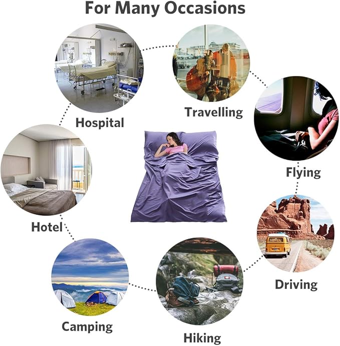 - 【Travel Sheets Sleeping Bag Liner Fit Any Season】: suitable for all the four seasons; can be as sleeping sheet, liner of sleeping bag, travel sheets or sleeping bag to store and separate dirty clothes and things, for outdoor trips, camping, backpacking, sleeper train, office lunch break. Sleeping bag liner is a must for outdoor going