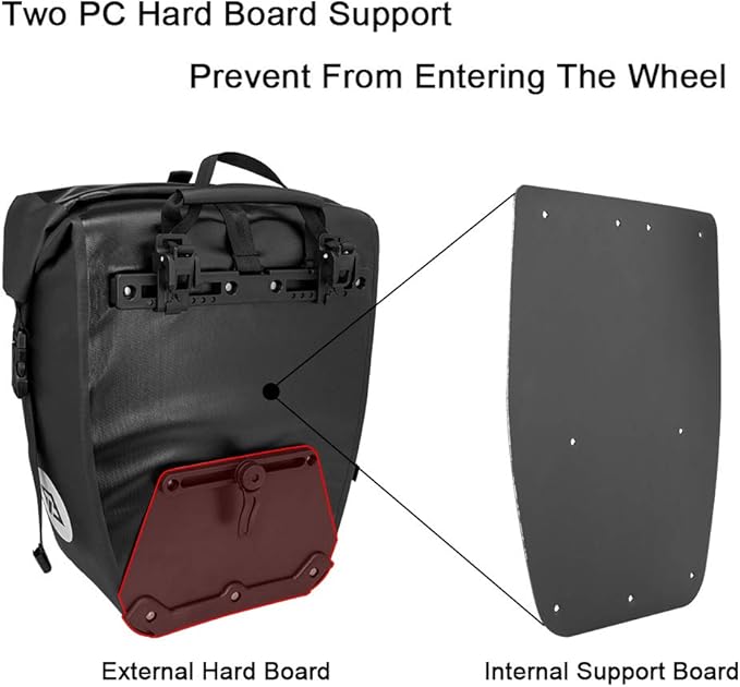 - FULLY WATERPROOF FABRIC: This bike pannier bags made with High density 840D Nylon and covered with TPU film which ensure you can use this bag freely on rainy day or wet weather without worrying about your items getting wet inside the bag or scratched. The bag's surface is easy to clean and can be wiped clean with a wet cloth in seconds without fear of muddy roads.