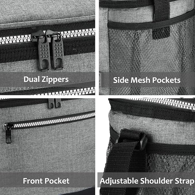 - PORTABLE DESIGN - The adjustable shoulder strap also facilitates you to take this lunch bag out for office or gym. Double zippers design for easy access. You can store small things in the two side mesh and front pocket.