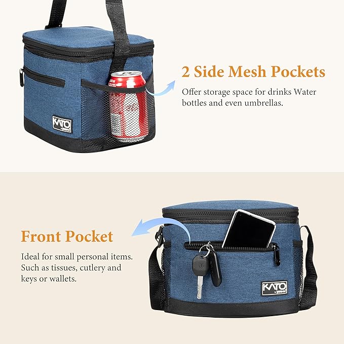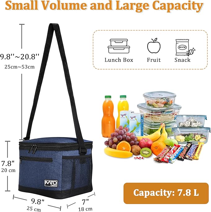- LARGE CAPACITY: Measuring 9.8 x 7 x 7.8 inches, this adult lunch box offers plenty of room for meals and snacks. It also features a front zipper pocket for essentials like keys and napkins, side mesh pockets for water bottles, and an interior mesh pocket for cutlery like forks, spoons, and knives, making it the perfect lunch box for men or women who pack meals for the day.