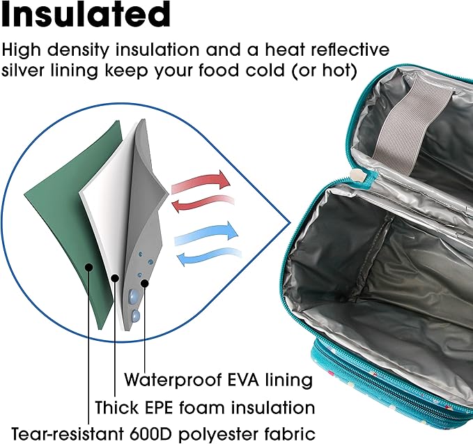 - Insulated — High density insulation and a heat reflective silver lining keep your food cold (or hot) in this thermal lunch bag