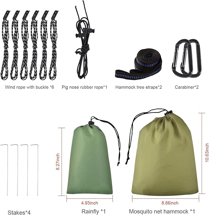 - 【What You Get 】Our portable hammock include various accessories, easy to install.Automatic quick-open design, with upgraded metal steel carabiner, 102 inch tree straps and other accessories, superior easy to install and enjoy it, no need to knot, complete the installation in seconds.