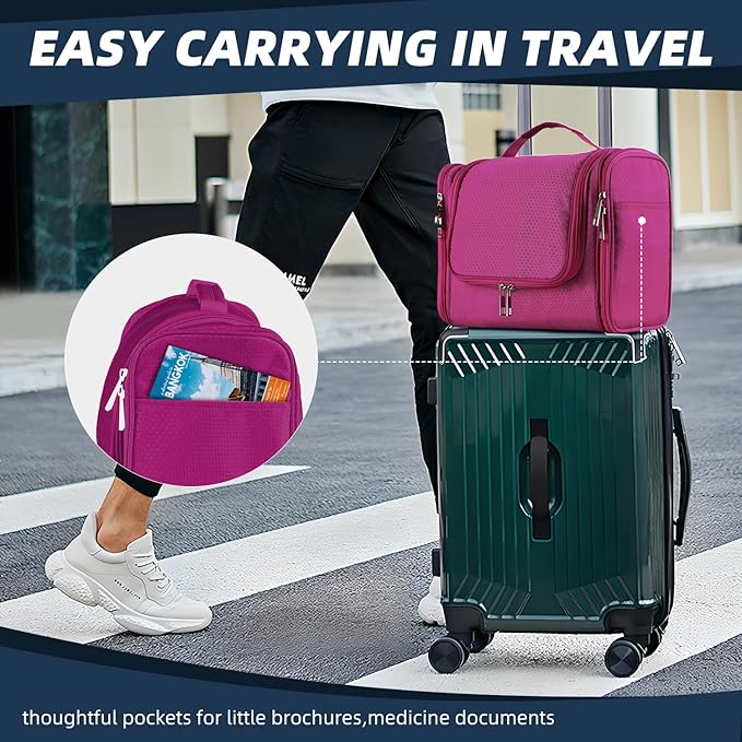 - Practical Hanging Hook: Our hanging toiletry bag features the HANGING function, the metal hook helps you hang the whole bag on the wall, especially in a narrow bathroom, camping tent, or RV. The hanging toiletry bag would save space and be convenient for accessing items while bathing