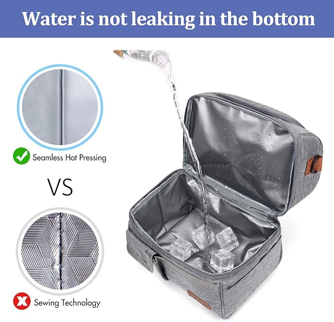 LOKASS Lunch Bag Double Deck Insulated Lunch Box Large Cooler Tote Bag with Removable Shoulder Strap Wide Open Thermal Meal Prep Lunch Organizer Box for Men/Women/Adults/Work/Outdoor, Gray