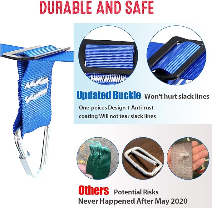 - TOP QUALITY & SAFETY - High quality PE material and High-strength anti-rust treated steel components will last for years. Each Ninja Warrior accessory is tested for a 600 LBS WEIGHT CAPACITY. We upgraded the "ONE-PIECE" and coated design buckle and solved the problem of slack line tearing.